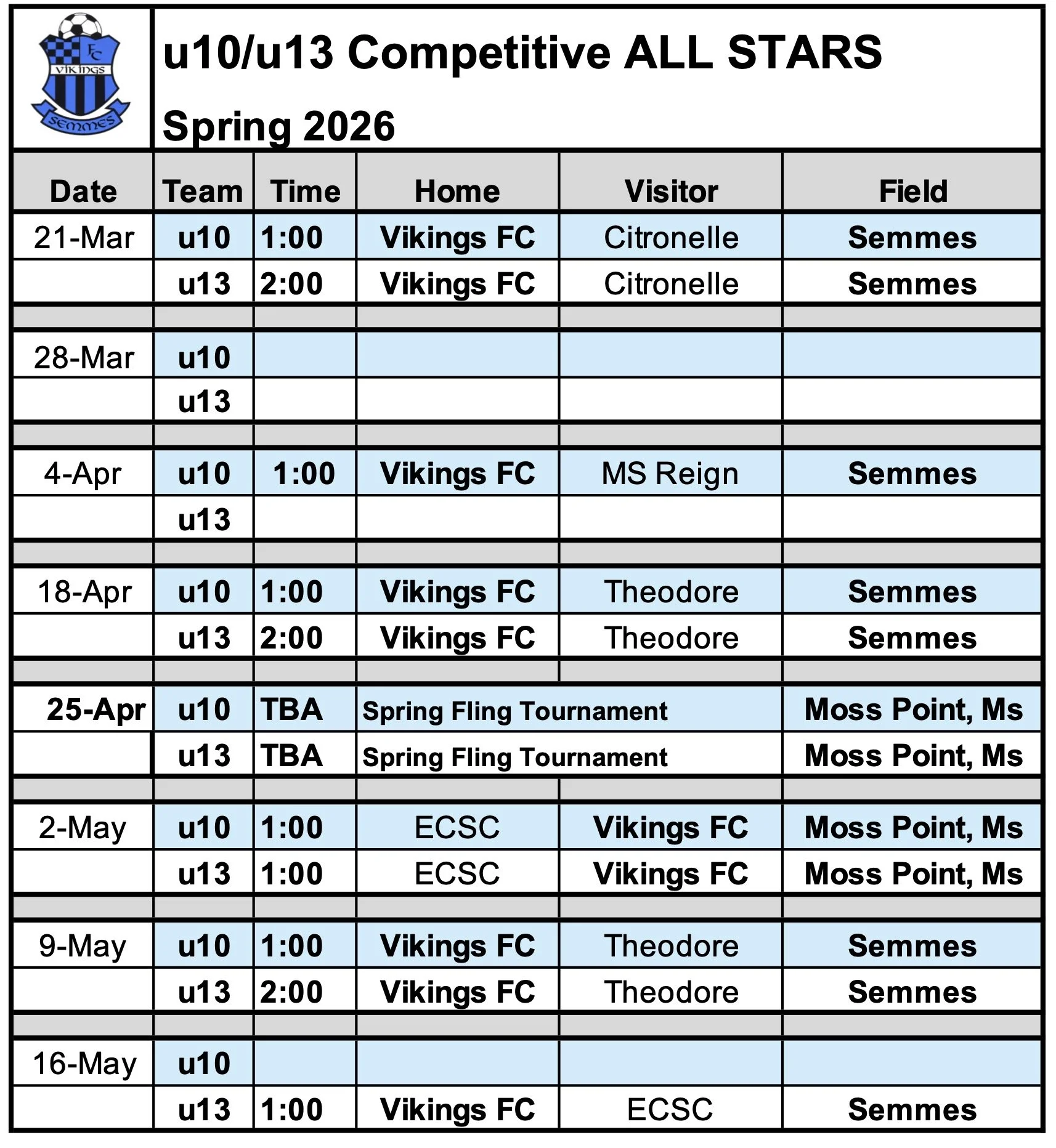 Rec League Schedules-Spring 2026