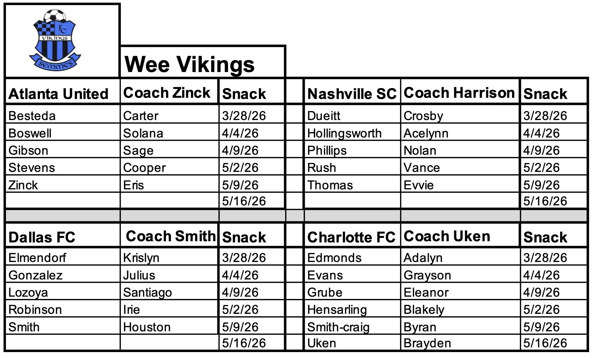 Rec League Schedules-Spring 2026